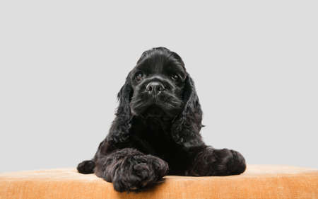 Dog. American Cocker Spaniel puppy on a gray background