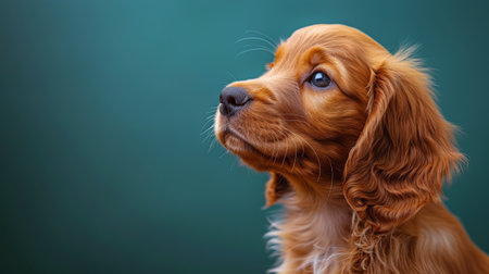 Golden cocker spaniel dog in side profile with alert expression against dark gray background studio lighting by Generative AI