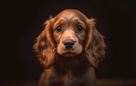 Cocker Spaniel puppy portrait on black background with copy space.