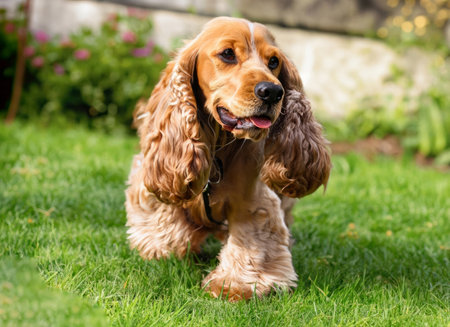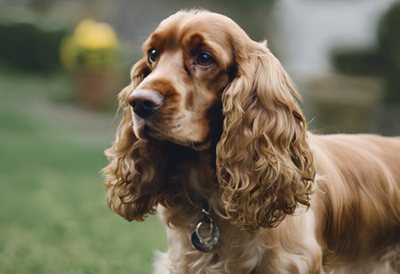 cocker spaniel dog in garden , generated by AI. High-quality photo