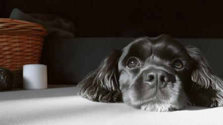 AI Generated. Black Cocker Spaniel Dog Sitting and Looking Up