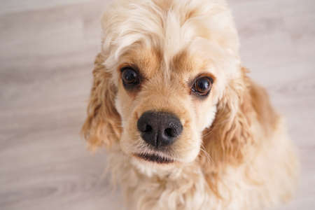 Young American Cocker Spaniel sitting on the floor. Close-up