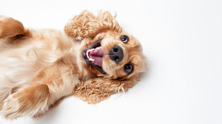 Banner of cute happy cocker spaniel puppy on white background. Space for text. Copy Space. Generative Ai