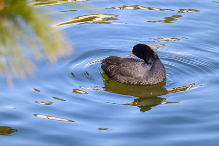 A beautiful view of a Eurasian coot in a pond in a Japanese park
