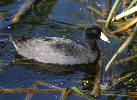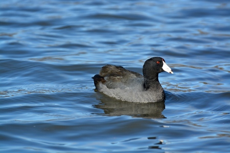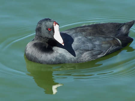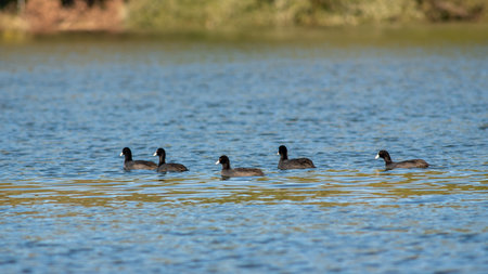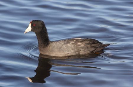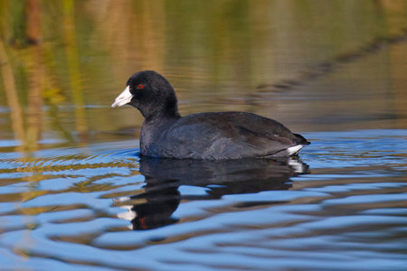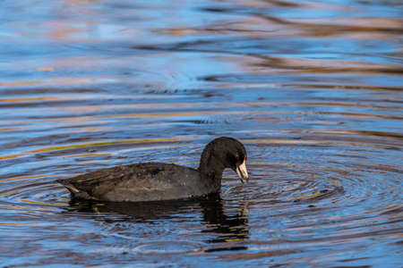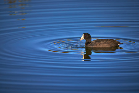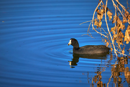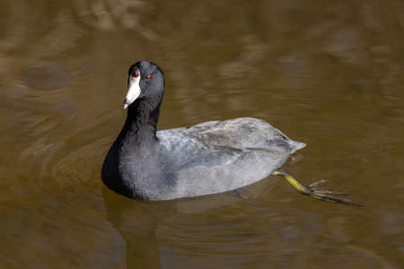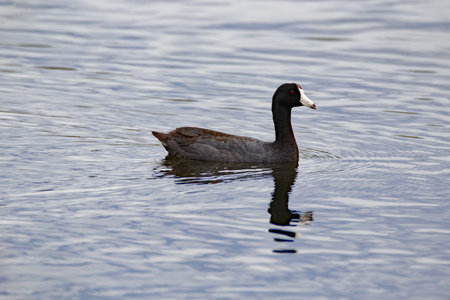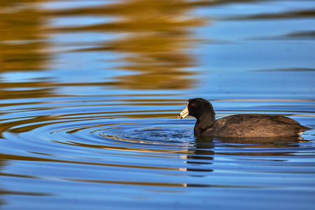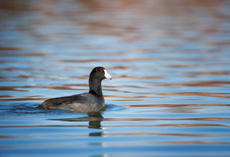 An American Coot (Fulica americana) swimming in the Sweetwater wetlands, located in Tuscon, Arizona, United States of America.