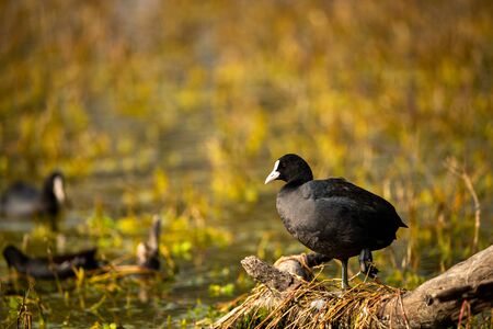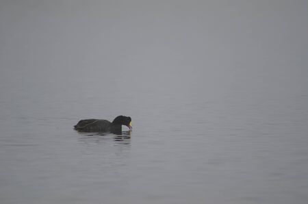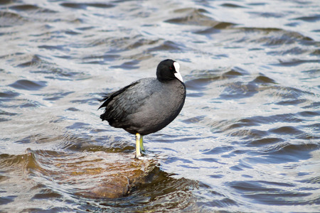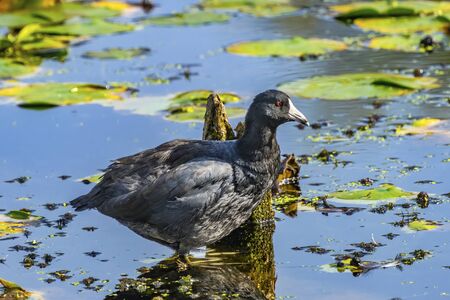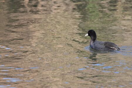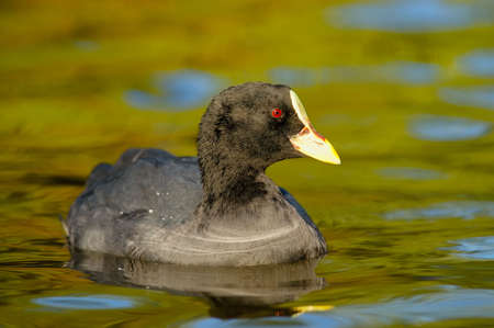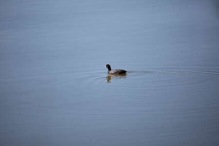 Rare bird coot on the lake