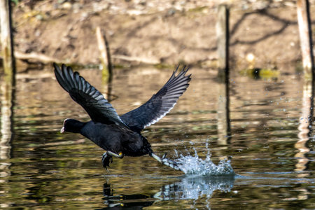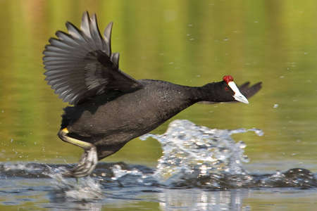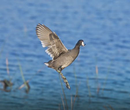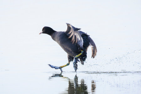 American Coot jumping. Latin name - Fulica americana.