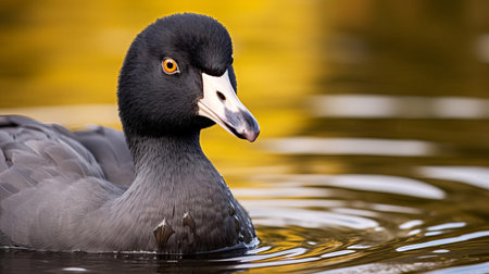 the american coot, a medium-sized waterbird, is showcased in this high-quality passport photo, taken with a 50mm lens, highlighting its distinctive black head, white forehead shield, and greyish-brown plumage, providing an intimate view of this bird's unique features in its natural habitat. ai generated