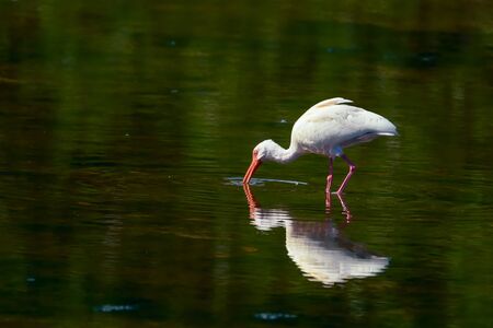Colorful American White Ibis Fishing Florida Eudocimus albus