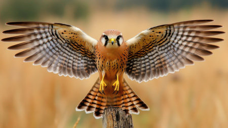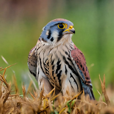 discover the stunning beauty of a kestrel in this photo-realistic image. with every detail meticulously crafted, this depiction captures the essence of this majestic bird of prey. from its sharp, piercing gaze to its intricately patterned feathers, this kestrel is sure to leave a lasting impression. ideal for nature enthusiasts and birdwatchers alike, this image is a must-see.keywords: photo-realistic, kestrel, bird of prey, nature, birdwatchers,