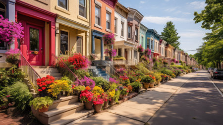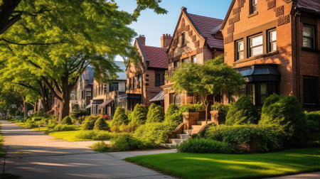 Charming neighborhood with cute houses and lush gardens