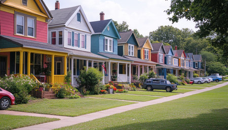 Colorful Houses Lining the Street AI