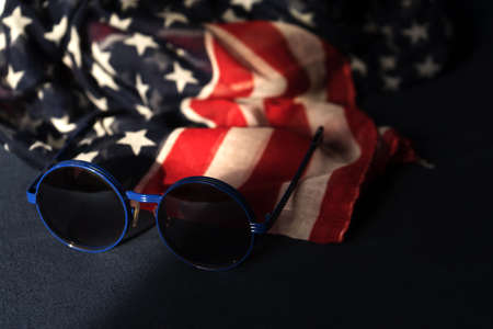 Sunglasses and American Flag 4 July celebration independece day USA.