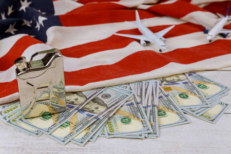 Petroleum products price on US dollar oil business, rising world oil prices brand USA flag model airplane