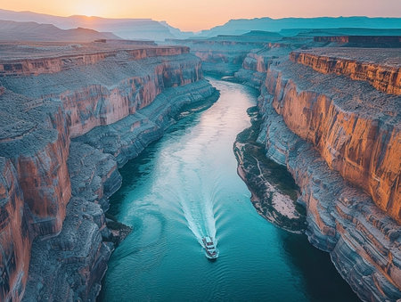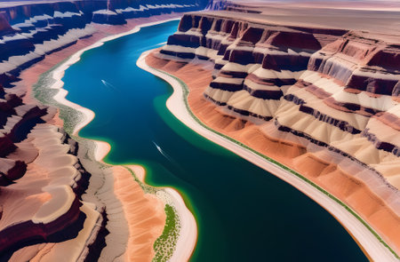 A breathtaking view of the river running through the Grand Canyon in Arizona, showcasing its stunning natural beauty with waterfalls and rock formations. --ar 3:2 --v 6.1 Job ID: a8760204-3f51-4d7e-b545-19414e57a8b1