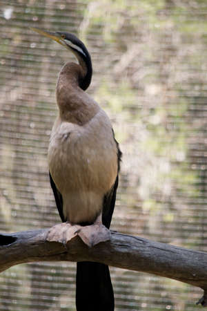 An Oriental Darter, Anhinga melanogaster, on a branch.
