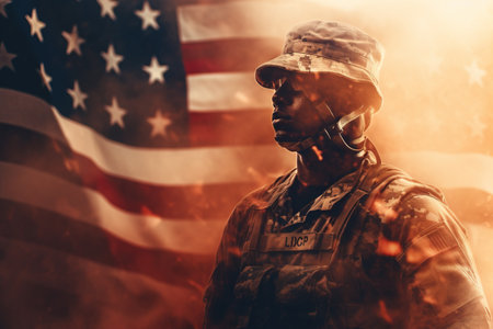 Double exposure of a soldier and flag a powerful symbol of patriotism and sacrifice