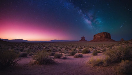 Panoramic view of Monument Valley at night, Navajo Tribal Park, Arizona, USA