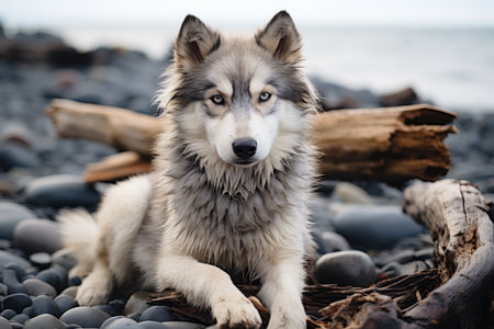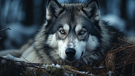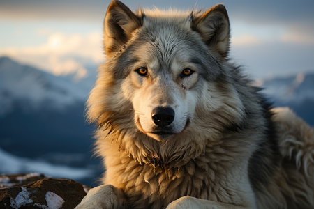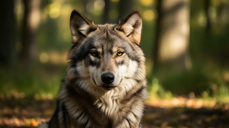 Portrait of a wild wolf in a natural environment, showing the beauty and power of this fascinating animal