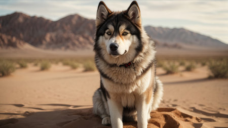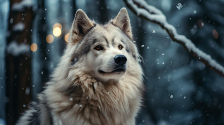 the awe-inspiring beauty of an Alaskan Malamute dog gracefully navigating through a serene and snow-filled forest. The majestic presence of the Malamute, coupled with the enchanting winter wonderland