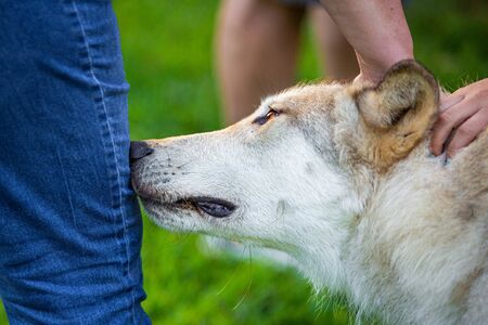 A white arctic polar wolf in Zoo Koethen Saxony Anhalt Germany