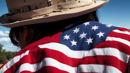 A close-up shot of a distressed American flag patch on vintage fabric, showcasing textures and colors that symbolize heritage, resilience, and identity.
