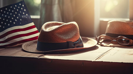 Background of the USA flag with a hat element, generated by AI