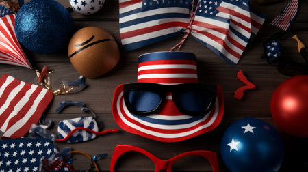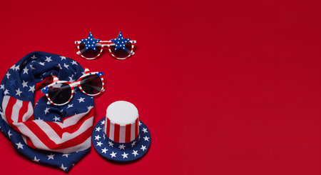 Festive patriotic accessories celebrating a national holiday with red, white, and blue star-spangled decorations.