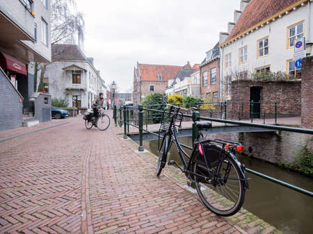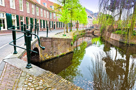 Urban scene in Amersfoort with typical local architecture. Embankment in the historical center of Amersfoort in the Netherlands