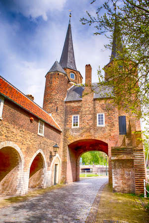Ancient city wall and entrance to the city center of Zutphen, a medieval city along the river IJssel in Gelderland in the Netherlands