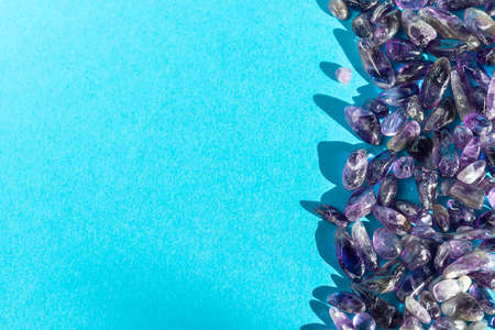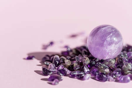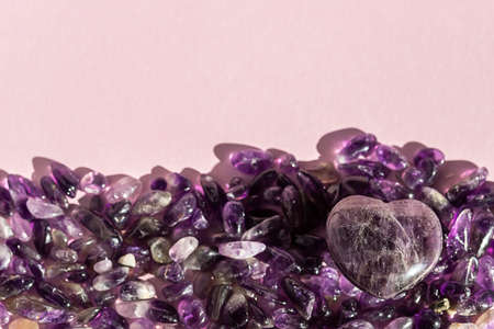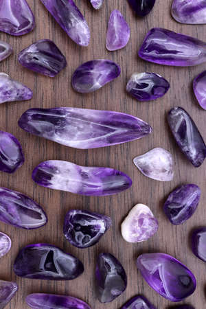 Amethyst gemstone on the table. Amethyst is a natural gemstone.