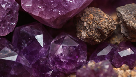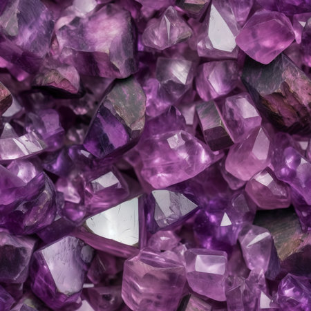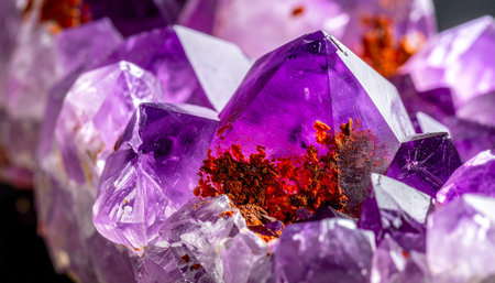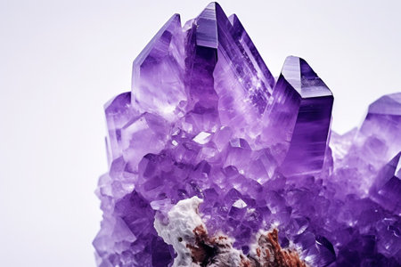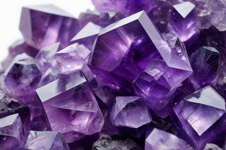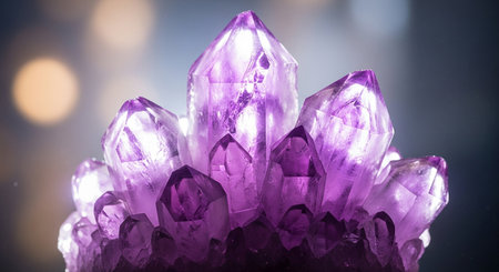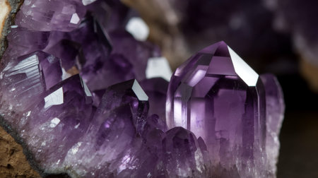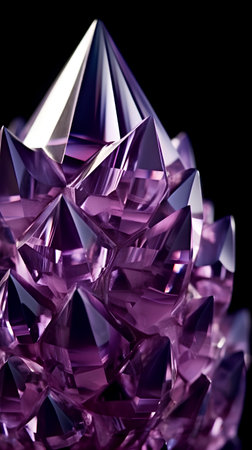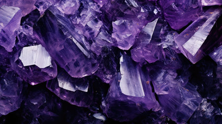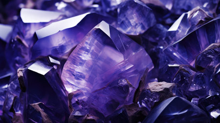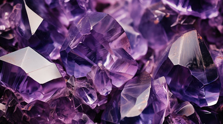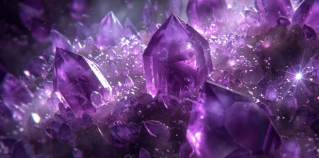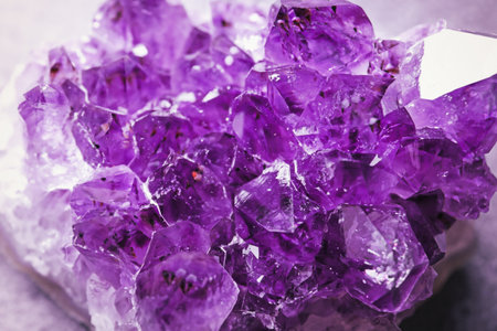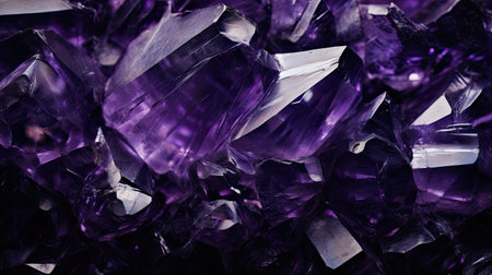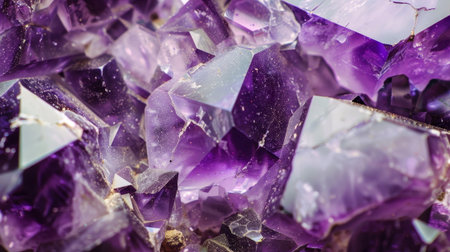 Close-up view of a stunning amethyst crystal cluster with sharp edges and rich purple hues, ideal for gemology themes.