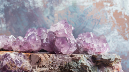 AI Generated. Purple crystals on soft pink background with natural light reflections and textures