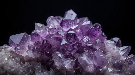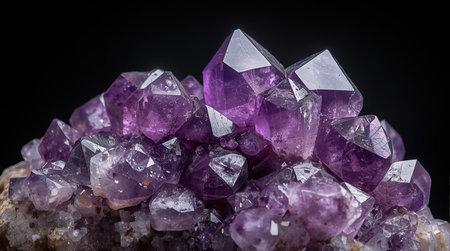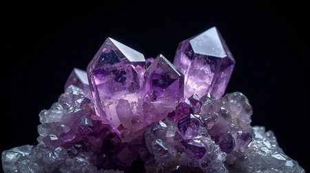 Shimmering Amethyst Crystal Cluster Against Dark Background
