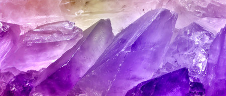 Abstract textured background with crystals. Shiny amethyst and quartz minerals