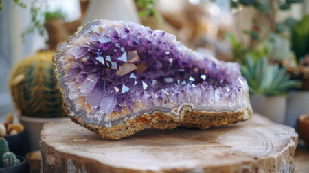 geode collection, an amethyst geode adorned with sparkling crystals, showcasing natures beauty and a stunning addition to any crystal collection