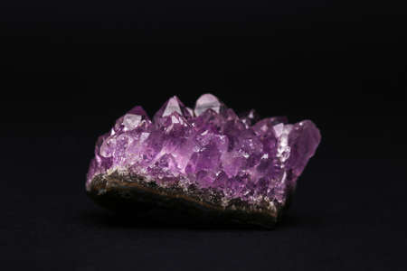 Amethyst crystals on black background. Amethyst is a natural mineral.