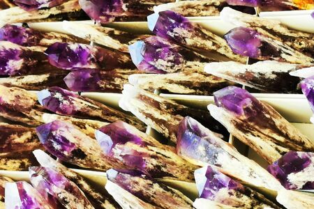 Ruby purple rough amethyst quartz crystals from the macro mineral crystal stone