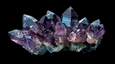Vibrant amethyst crystal cluster with deep purple facets and sparkling geometric formations
