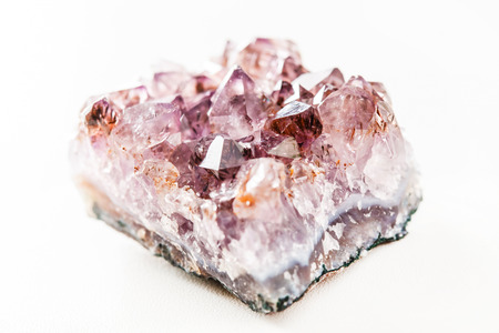 Macro Mineral Stone Amethysts in the rock on a white background close up