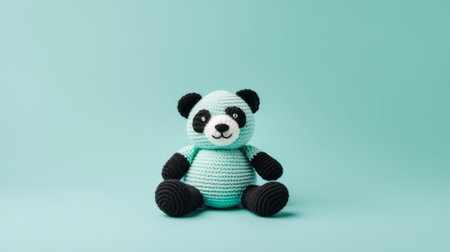 the adorable knitted panda bear toy sits serenely against a pristine white background, showcasing its intricately stitched fur and endearing facial features, perfect for cuddling and playtime, making it a delightful addition to any nursery or child's toy collection, evoking feelings of warmth and comfort. ai generated