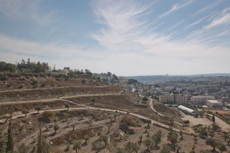 Landscape view of famous olives mount, old jerusalem city