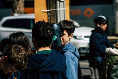 Tel Aviv Israel February 21, 2020 View of unidentified Israeli teenagers demonstrating in front of the Tel Aviv town hall against global warming and supporting Greta Thunberg