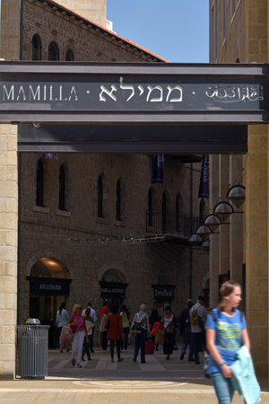 JERUSALEM - MAR 26 2015:Visitors at Mamilla mall in Jerusalem, Israel.It's a popular open air shopping mall with two-level indoor section, hotels, cafes, boutiques and fashion stores.