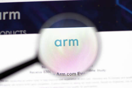 New York, USA - 15 February 2021: Arm website in browser with company logo, Illustrative Editorial