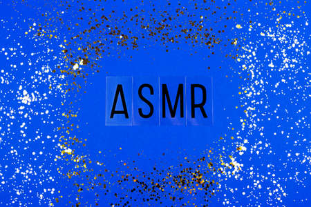 Letters ASMR on the blue background. Flat-lay.