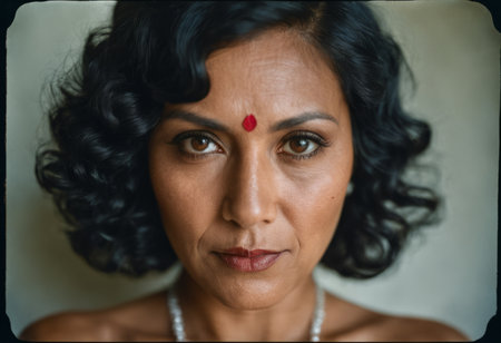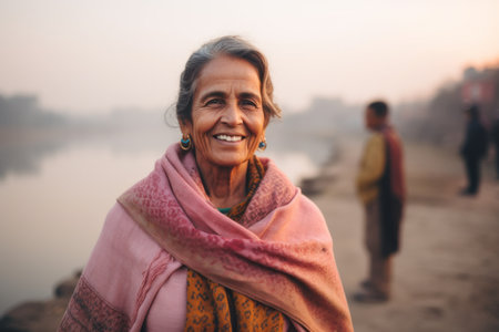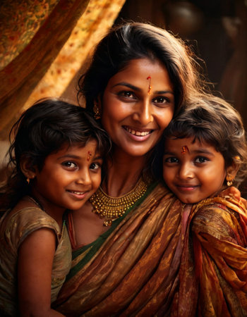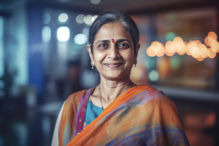 Portrait of a smiling Indian woman wearing saree and traditional clothes