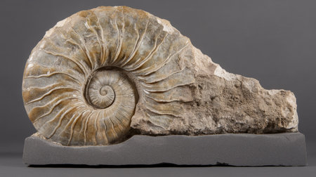 Ammonite, Prehistoric fossilized mollusk, an extinct marine animal.