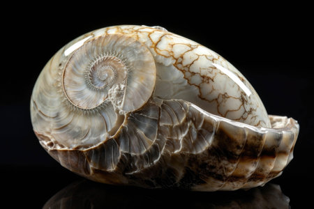 Polished fossil shell of a mysterious creature its intricate patterning a clue to its lost identity.. AI generation