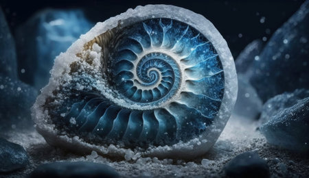 A detailed depiction of a seashells spiral pattern. AI generated illustration